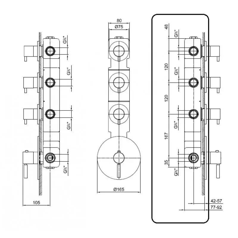 Fantini AR/38 Встраиваемый термостат для душа на 3 источника, цвет хром 38 02 3903SB