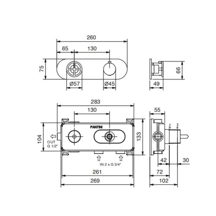 Fantini Fontane Bianche Смеситель для душа терм., цвет: Matt Gun Metal PVD 47 P5 P331B