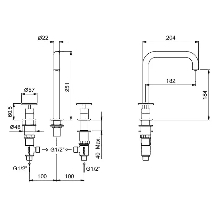 Fantini Fontane Bianche Излив, установка на столешницу, цвет Matt Gun Metal PVD 47 P5 8441