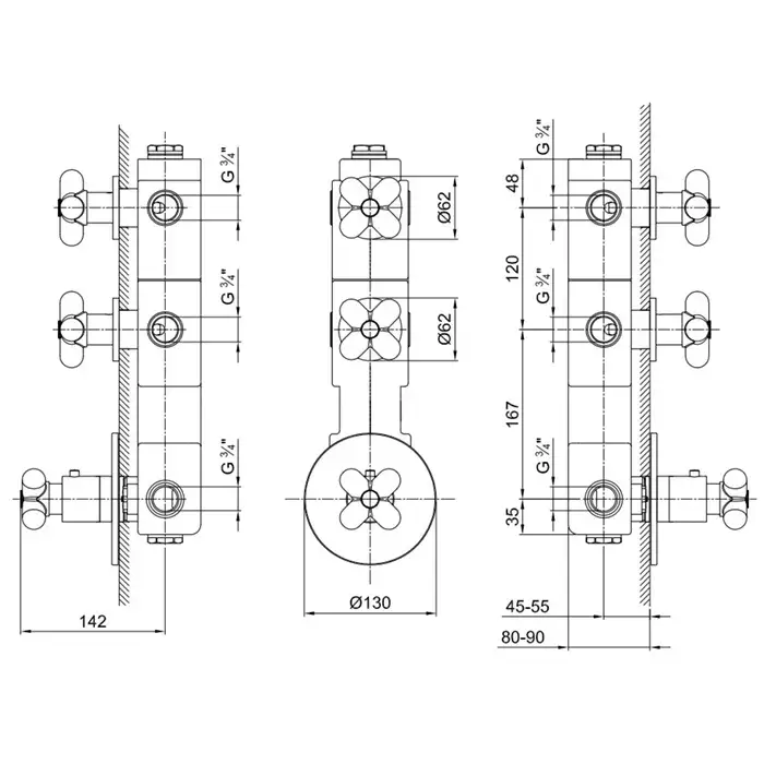 Fantini Внутренняя часть запорного вентиля, переключатель на 3 источника, 1/2 19 00 D277A