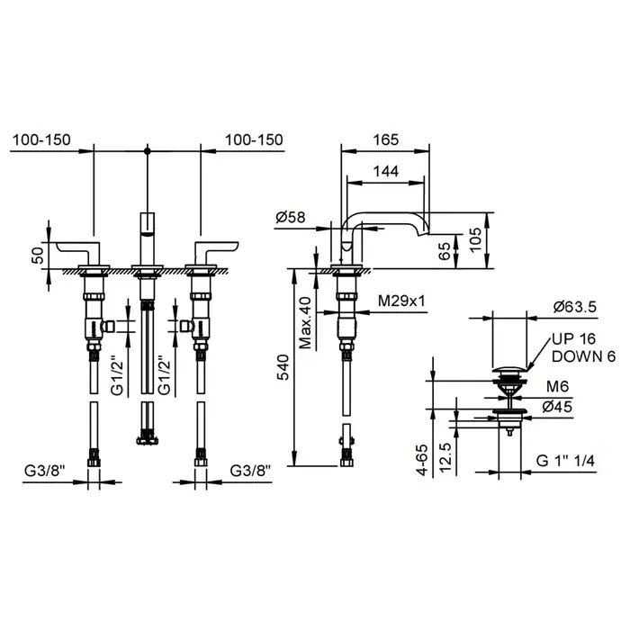 Fantini Icona Classic Смеситель для раковины, на 3 отв, излив 20 см, цвет: черный мат. 53 13 R013B