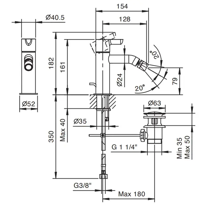 Fantini Icona Classic Смеситель для биде, 1 отв., с донным клапаном, цвет хром 53 02 R408F