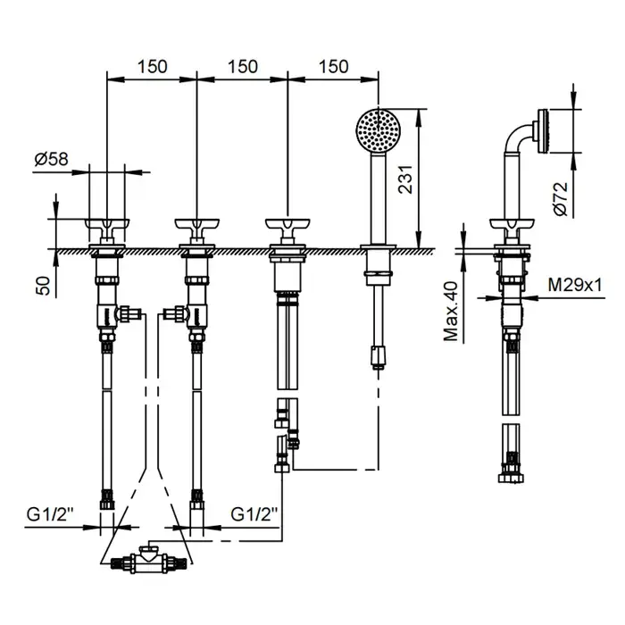 Fantini Icona Classic Смеситель на борт ванны, 4 отв., с ручн.душем, цвет хром 53 02 R067