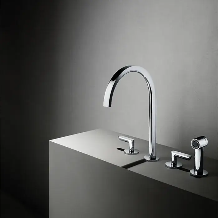 Fantini Icona Deco Смеситель для кухни, 4 отв, излив 21,5 cм, с ручн душем, цвет хром 53 02 R151