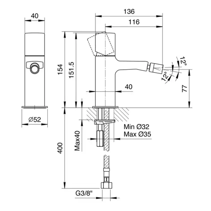 Fantini Lame Смеситель для биде, 1 отв., без донного клапана, цвет: хром 24 02 M108WF