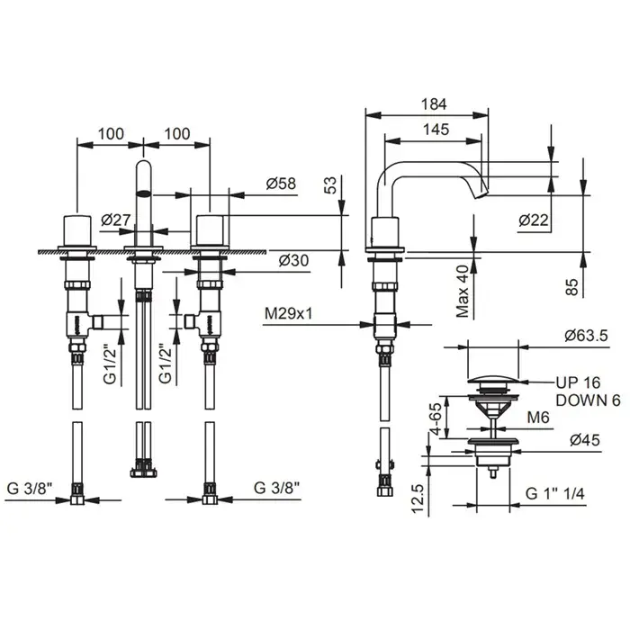 Fantini Lame Смеситель для раковины, 3 отв., излив 14,5 cм, цвет хром 24 02 M304
