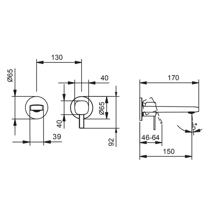 Fantini Lame Смеситель для ванны, настенный, на 2 источника, излив 16 см, цвет: хром 24 02 M015