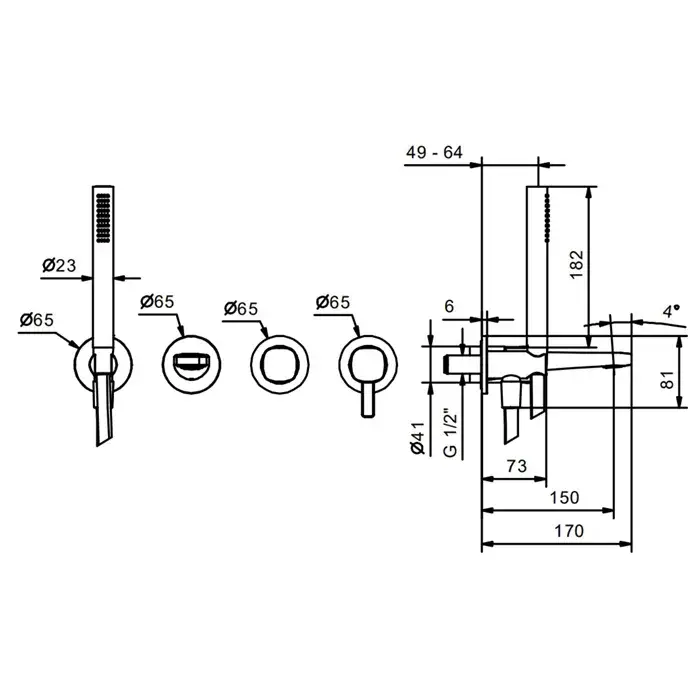Fantini Lame Смеситель для ванны, встраиваемый, излив 15 cм, с ручн.душем, цвет хром 24 02 M120B