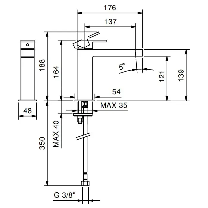 Fantini Mare Смеситель для раковины, 1 отв., излив 14 cм, цвет хром 51 02 V004WF