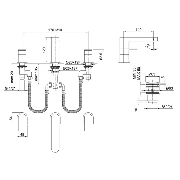 Fantini Mare Смеситель для раковины, 3 отв., излив 14 cм, цвет хром 51 02 6304
