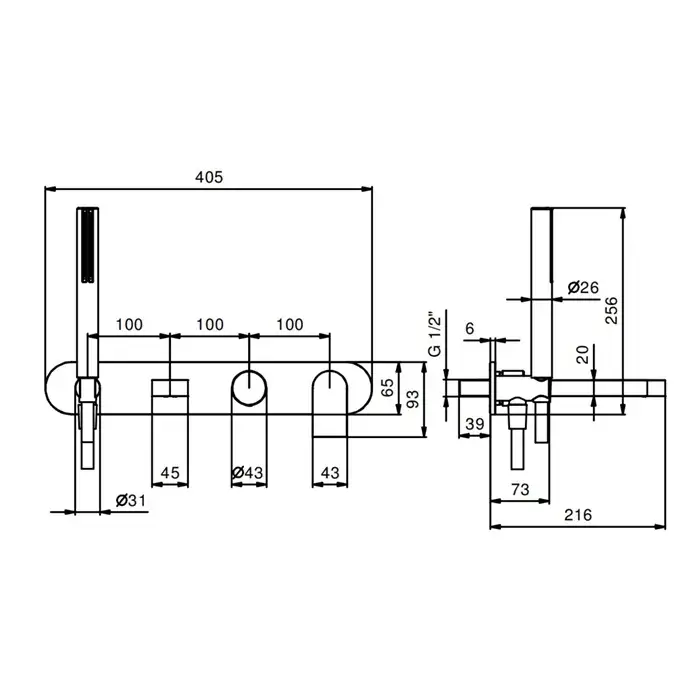 Fantini Mare Смеситель для душа, встраиваемый, на 2 источника, с ручн душем, цвет хром 51 02 V084B