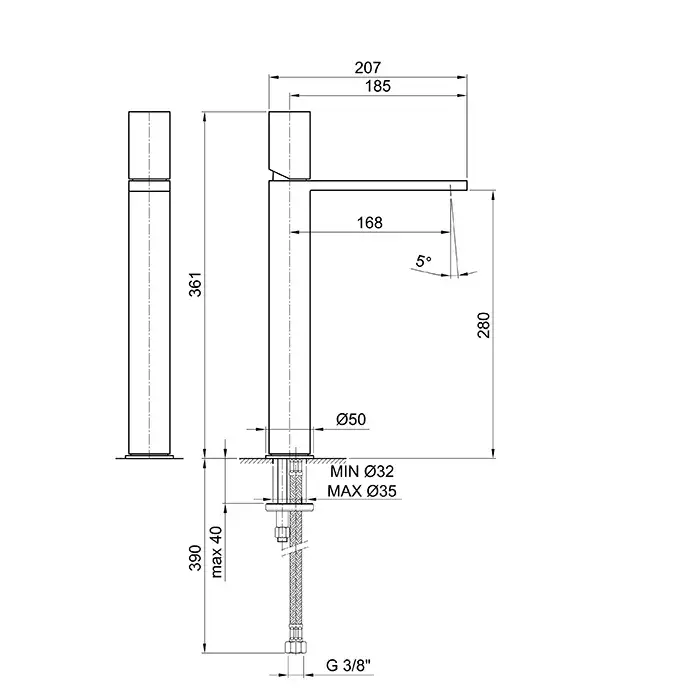 Fantini Milano Смеситель для раковины, 1 отв., цвет матовая натуральная сталь 31 93 3006WF