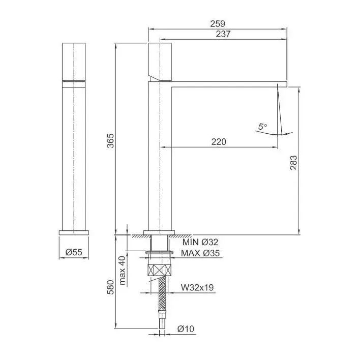 Fantini Milano Смеситель для раковины, 1 отв., цвет матовая натуральная сталь 31 93 3051F