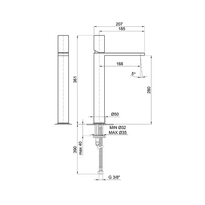 Fantini Milano Смеситель для раковины, 1 отв., излив 17 cм, цвет Matt Gun Metal PVD 31 P5 3006WF