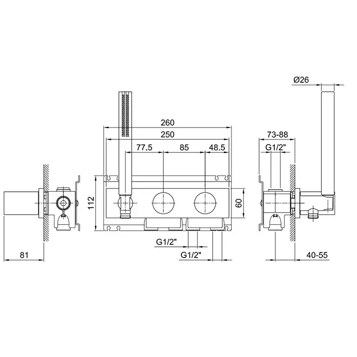 Fantini Milano Внутр. часть смес. для душа, 1/2", цвет мат. сталь 22 00 D184A