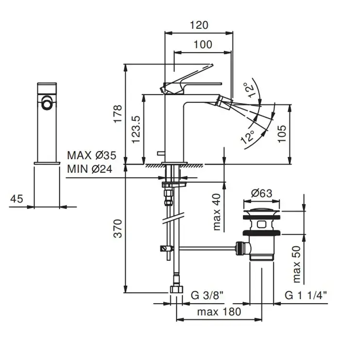 Fantini Mint Смеситель для биде, 1 отв., с донным клапаном, цвет хром 34 02 F008F