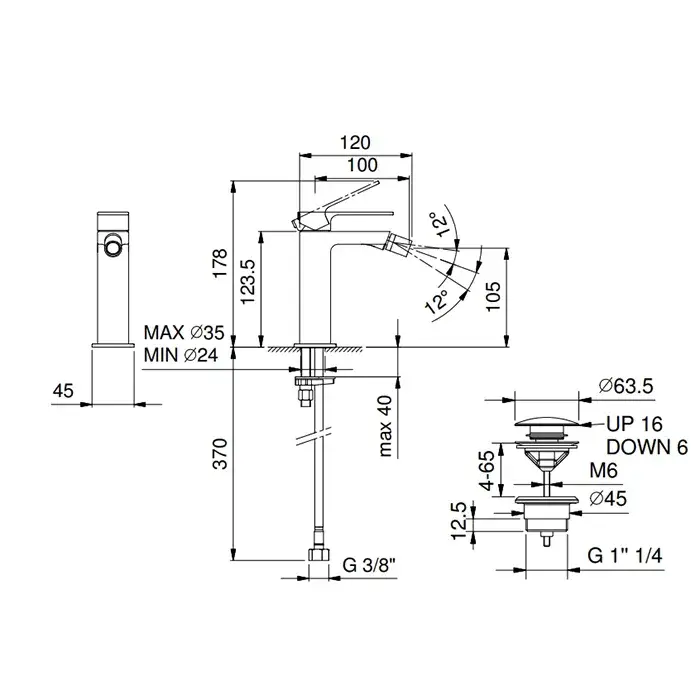 Fantini Mint Смеситель для биде на 1 отверстие, однорычажный, цвет: матовая натур. сталь 34 93 F008F
