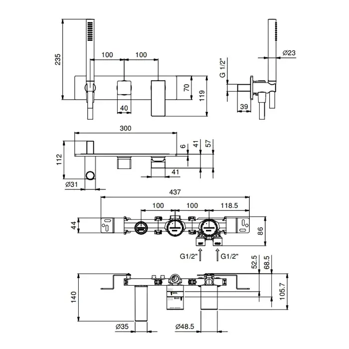 Fantini Mint Планка и соединения для простой установки термостатических смесителей 91 00 W043