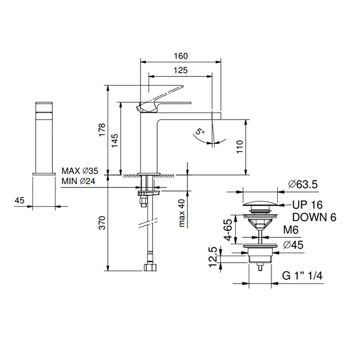 Fantini Mint Смеситель для раковины на 1 отверстие, излив 12,5 см, цвет: черный матовый 34 13 F004F