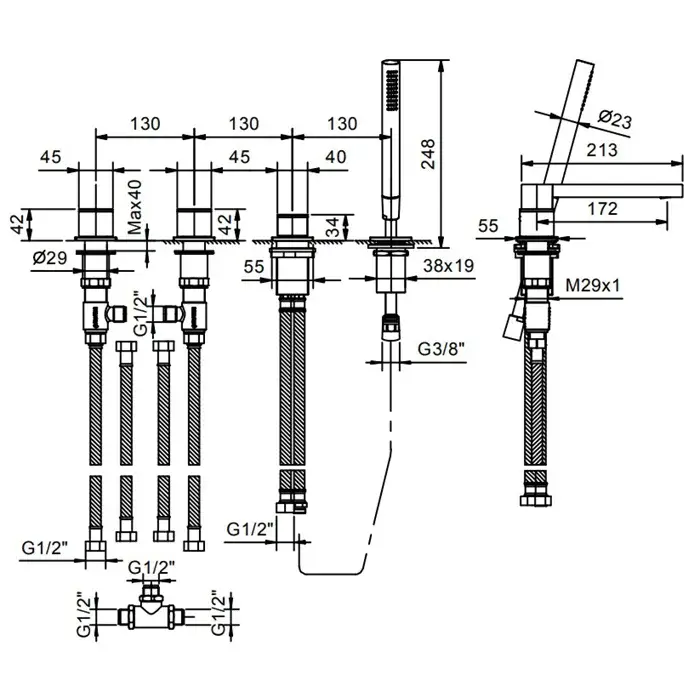Fantini Mint Смеситель на борт ванны, на 2 источника, 4 отв., цвет нерж. сталь 34 93 F167