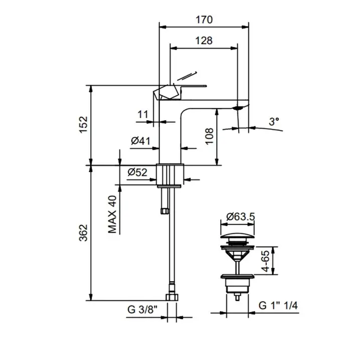 Fantini Myo Смеситель для раковины на 1 отверстие, без донного клапана, цвет: хром 61 02 V604WF