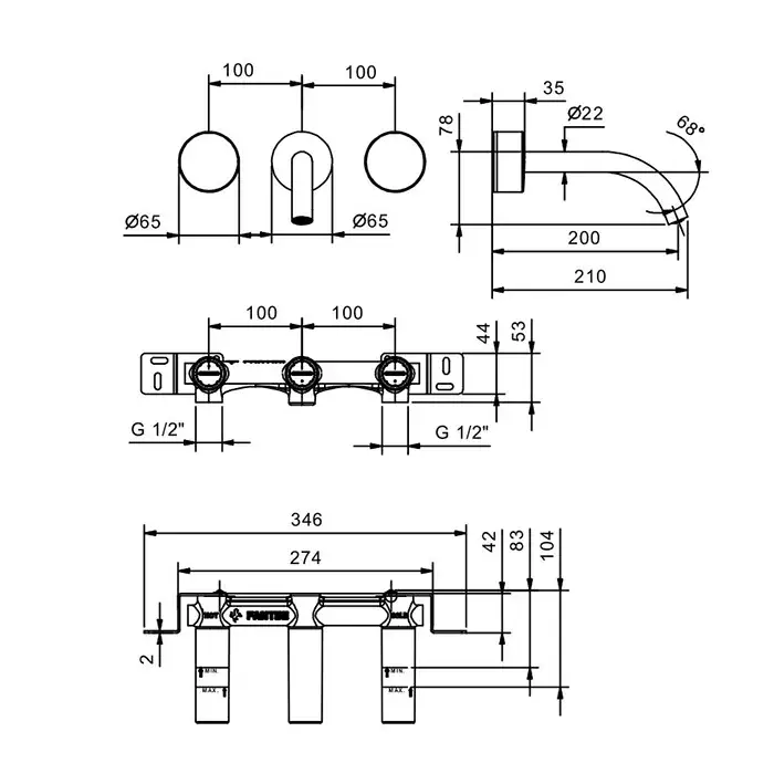Fantini Nice Излив для ванны 15 см, настенный, цвет: хром 65 02 W010