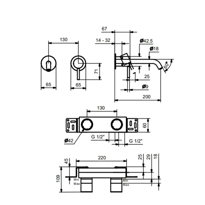 Fantini Nostromo Small Смеситель из стены для раковины, цвет: черный матовый 50 13 G913B