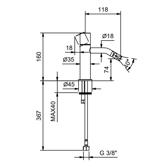 Fantini Nostromo Смеситель для биде на 1 отверстие, высокий излив, вылет 12,5 см 50 P5 E908WF