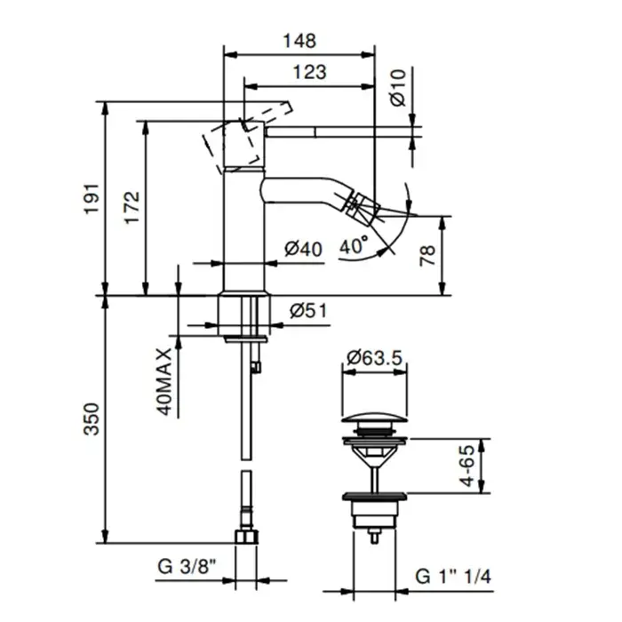 Fantini Nostromo Смеситель для биде, c донным клапаном, излив 12,5 см, цвет: черный матовый 50 13 E808F