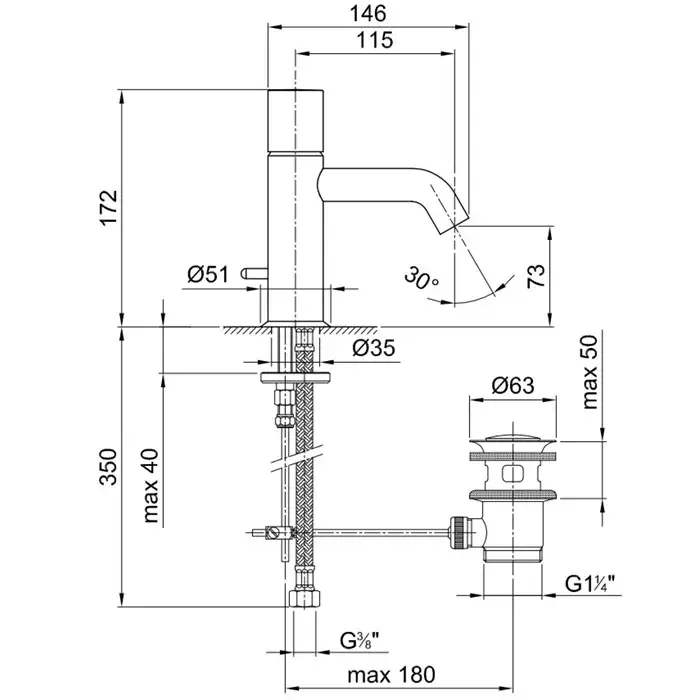 Fantini Nostromo Смеситель из стены для раковины, цвет: матовая натуральная сталь 50 93 G913B