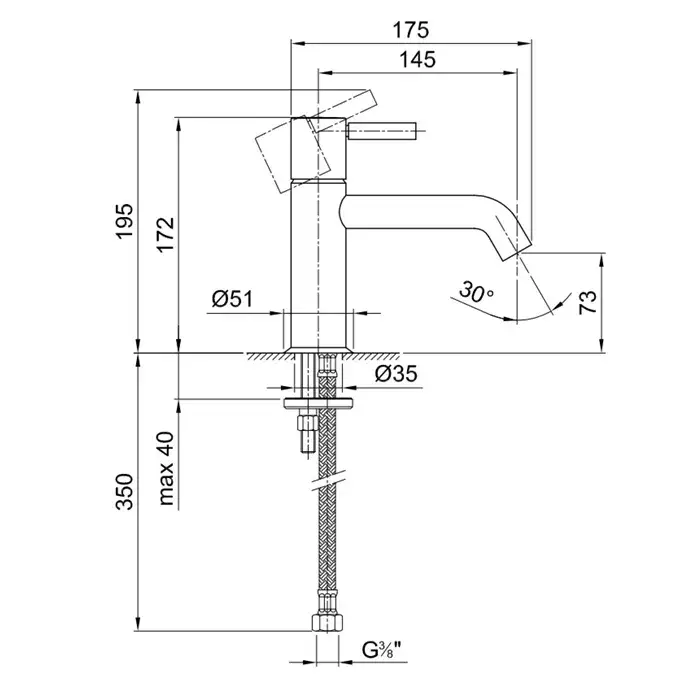 Fantini Nostromo Смеситель для раковины, 1 отв., излив 14,5 см, цвет: нержавеющая сталь 50 93 E803WF