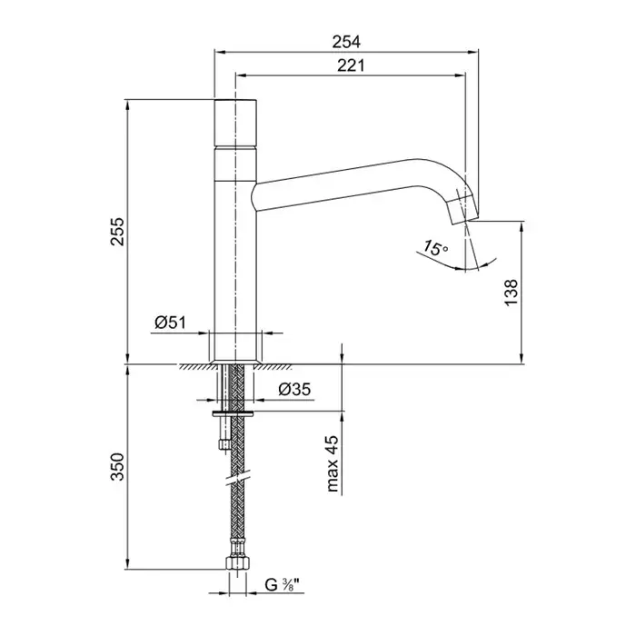 Fantini Nostromo Смеситель для раковины на 1 отверстие, высокий излив, вылет 14,5 см 50 P5 E906WF