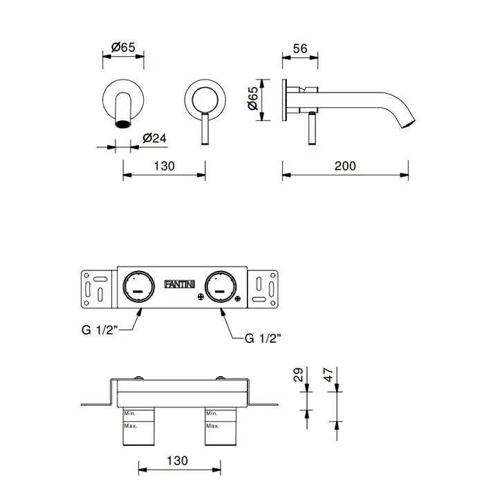 Fantini Nostromo Small Смеситель из стены для раковины, наружная часть, цвет: хром 50 02 G913B