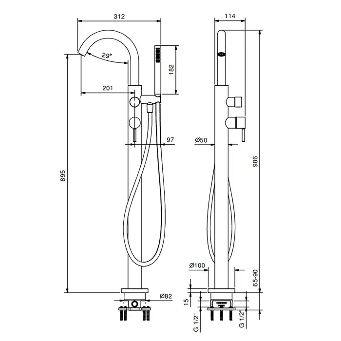 Fantini Nostromo Смеситель для биде на 1 отверстие, высокий излив, вылет 12,5 см 50 P5 E908WF