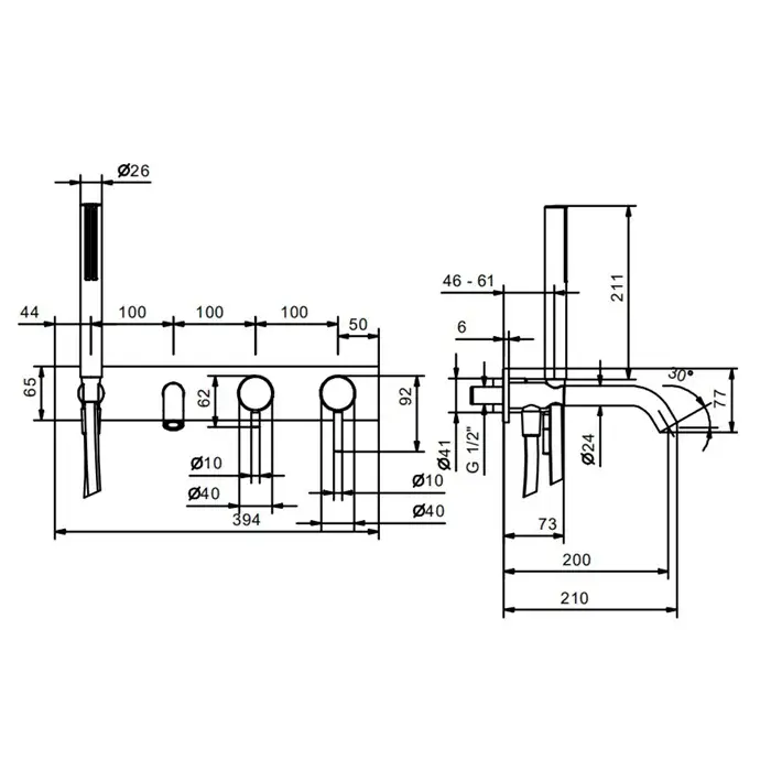 Fantini Nostromo Смеситель для ванны, встраиваемый, с ручн душем, излив 20 cм, цвет хром 50 02 E821B