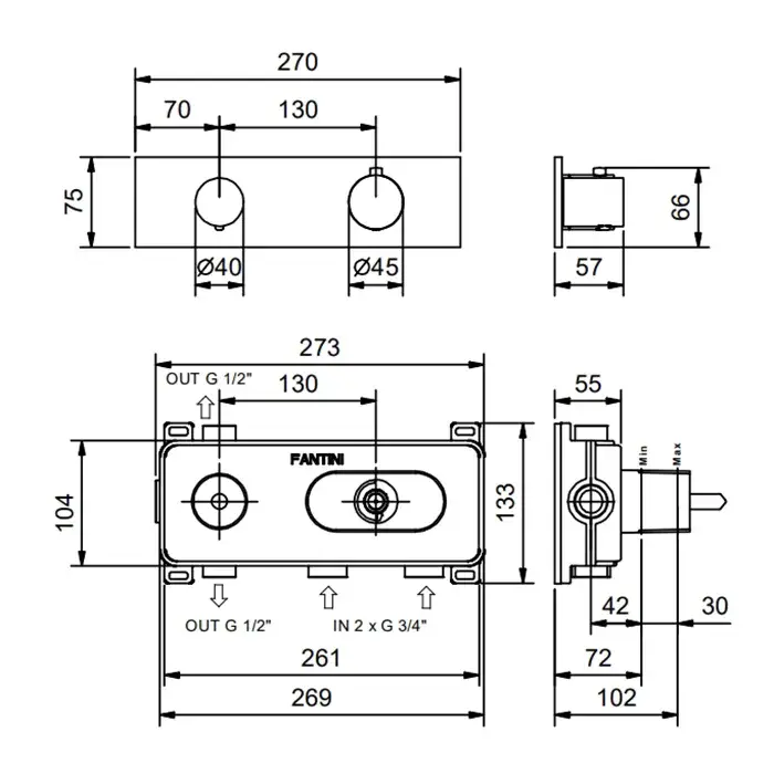 Fantini Nostromo Термостат. встраив. смес-ль для душа, цвет: черный матовый 87 13 G572B