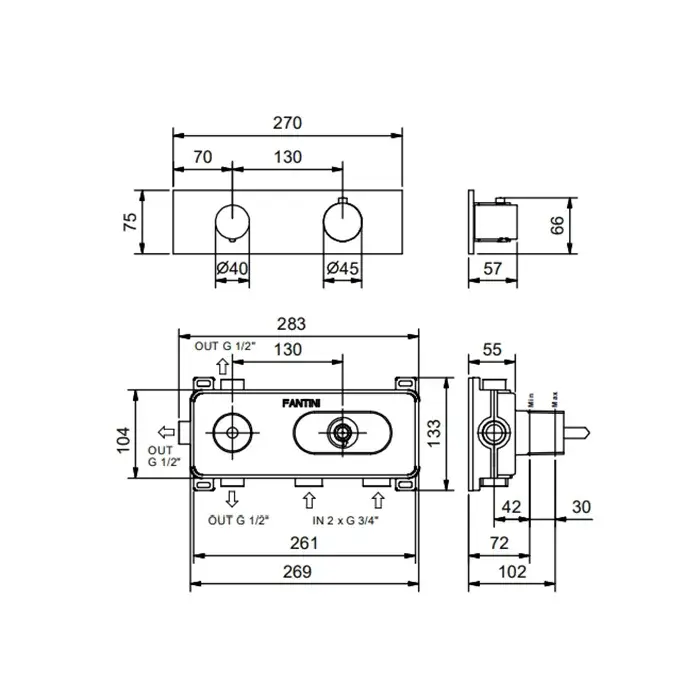 Fantini Смеситель для душа встраиваемый, цвет: Matt Gun Metal PVD 87 P5 G573B