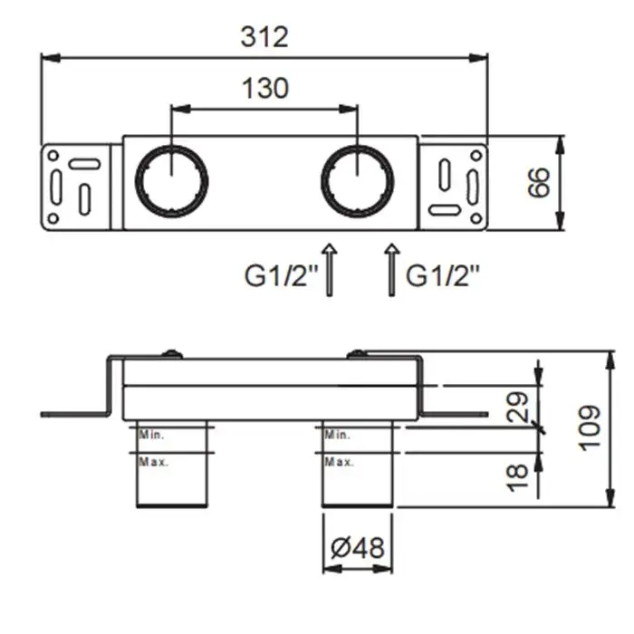 Fantini Внутренняя часть для двойного верхнего душа, 1/2 86 00 8035A