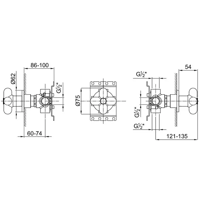 Fantini Внутренняя часть запорного вентиля, переключатель на 3 источника, 1/2 19 00 D277A