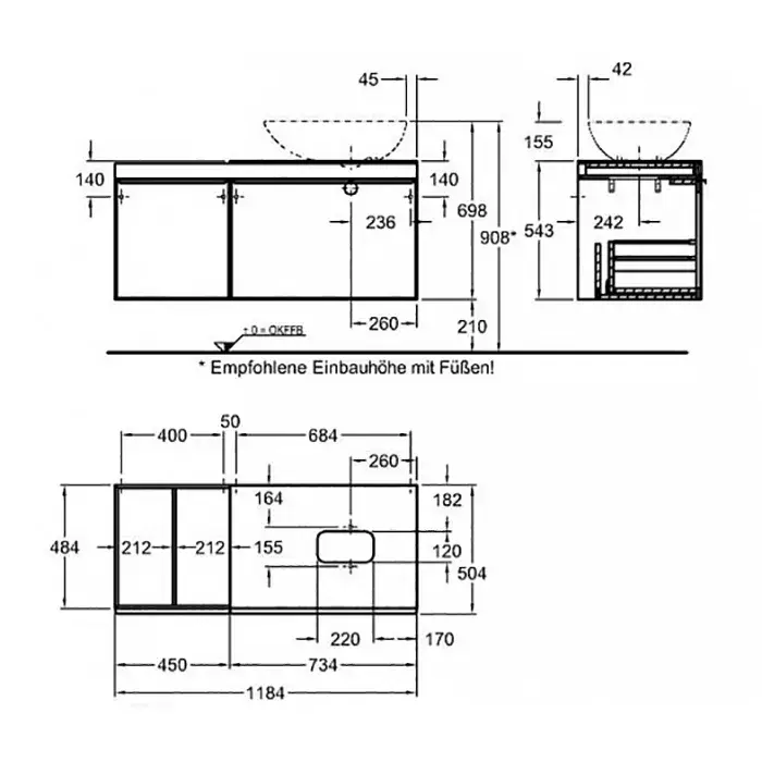Geberit Citterio Тумба 118,4х54,3х50,4 см, с ящ./полкой, SX, цвет: беж./светл. дуб/мел. 500.565.JI.1