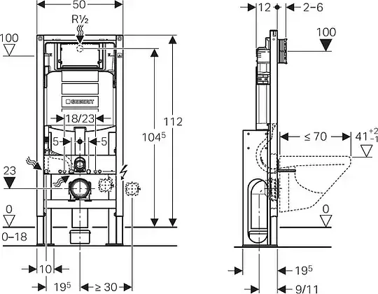 Geberit Duofix Инсталляция для унитаза 112h см с бачком скрытого монтажа Delta 12, без крепления 111.153.00.1