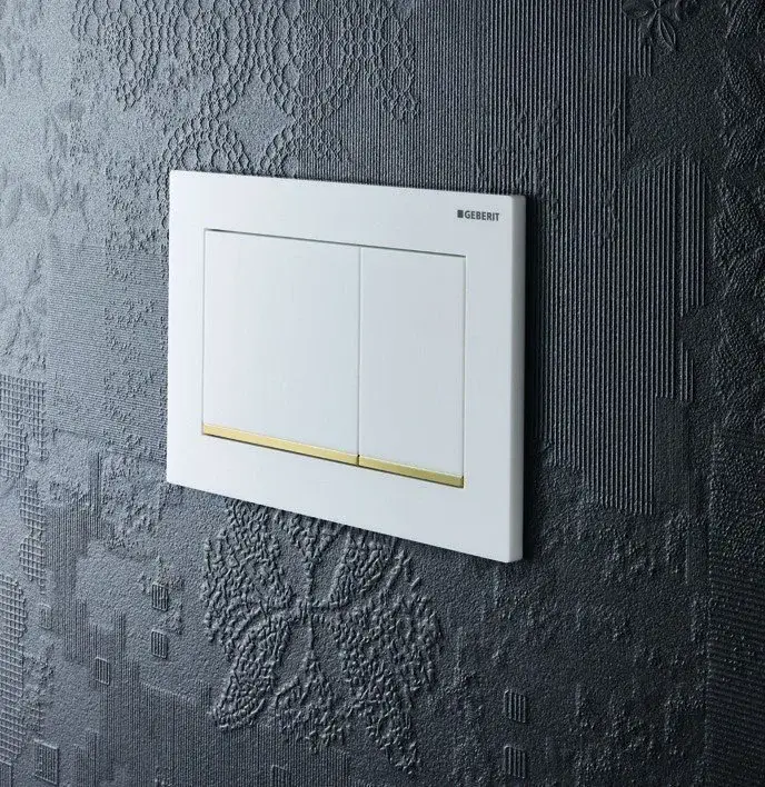 Geberit Omega 30 Кнопка смыва для унитаза, пластик, цвет: белый/золото 115.080.KK.1