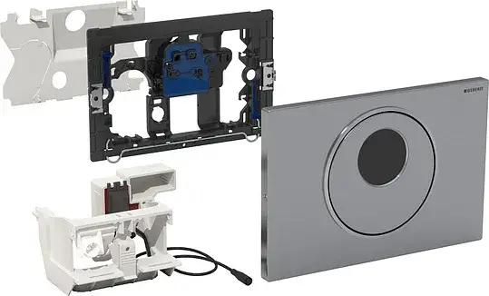 Geberit Sigma 10 Кнопка смыва для писсуара, пневмопривод, пластик цвет черный, окантовка хром глянец 116.015.KM.1