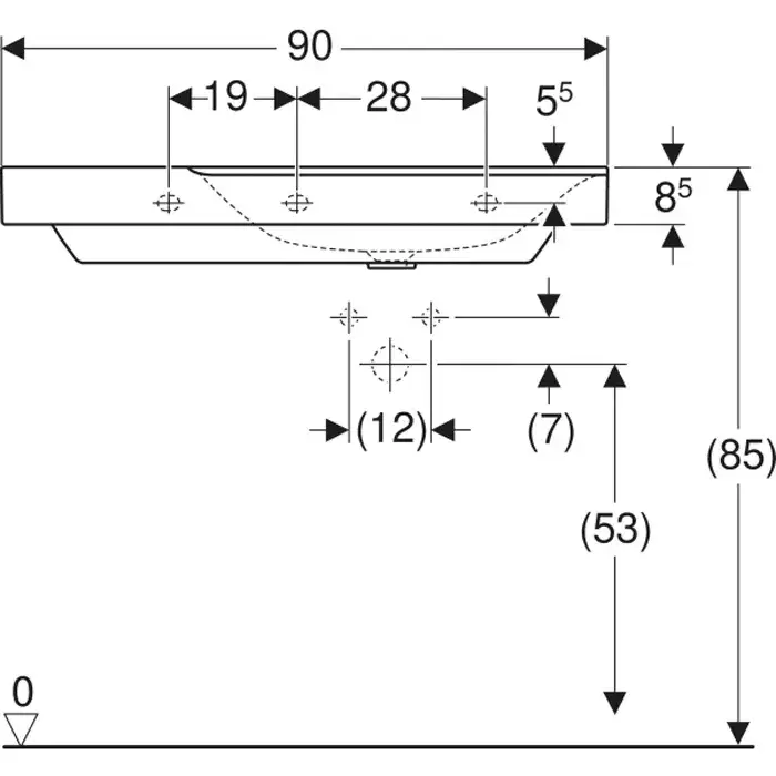 Geberit Xeno2 Раковина с полкой, 90х48 см, без отв., подвесная, цвет: белый 500.536.01.1
