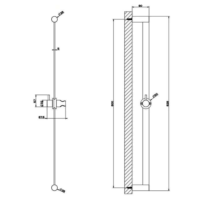 Gessi 316 Bath-Shower Штанга 82,8см, с руч душ,шлангом 1,5м, шланг.подсоед, цвет: copper brushed PVD 54045#708