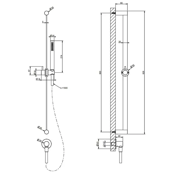 Gessi 316 Bath-Shower Душевой гарнитур: ручной душ, штанга 83 см, шланг 150 см, цвет: steel brushed 54045#239