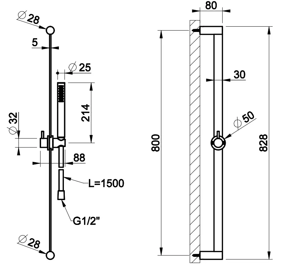 Gessi 316 Bath-Shower Душевой гарнитур: ручной душ, штанга 83 см, шланг 150 см, цвет: steel brushed 54044#239