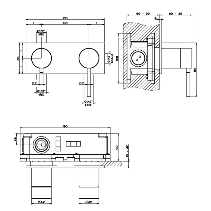 Gessi 316 Bath-Shower Смеситель для ванны встраиваемый, 2 потребителя, цвет: black metal brushed PVD 54079#707