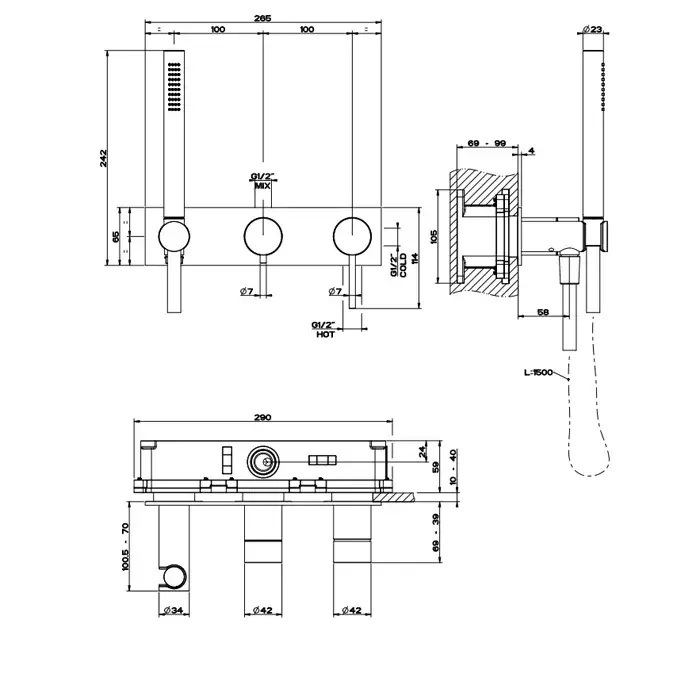 Смеситель для душа встраиваемый