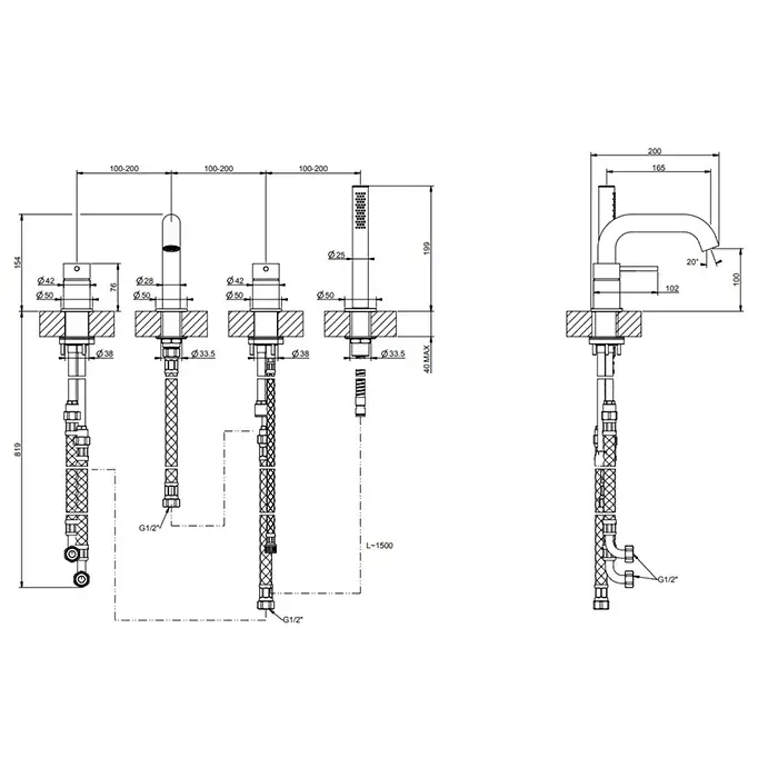 Gessi 316 Bath-Shower Смеситель на борт ванны на 4 отверстия, излив 16,5 см, цвет: brushed brass PVD 54037#727